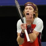 Rublev never tried to hide his anger at the way things were going. He hit himself in the leg with his racket or punched his strings. Over and over, he gesticulated and yelled toward his guest box, where only four of the 15 seats were occupied, quite a contrast to Tiafoe’s completely full section.