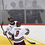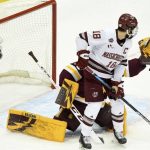 Bobby Trivigno earned assists on both Anthony Del Grazio’s third-period tying goal and the winner for UMass. Trivigno got the primary assist on the overtime goal, working with the puck behind the net before darting to the side of the crease to the left of goalie Zach Stejska. Trovigno slid the puck across the blue paint to a waiting Wait, who was all alone on the opposite side.