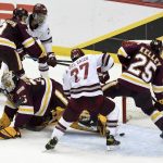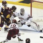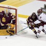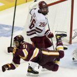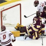But the undermanned Minutemen (19-5-4) largely played undeterred, grabbing the lead with a Zac Jones goal on the power play 15½ minutes into the game. After Minnesota Duluth scored the next two, Del Grazio tied it with 11:35 left by slamming home a rebound of a Josh Lopina shot into an open net.