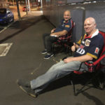 Mike Simpson and Peter Rowe, self-described “rugby league tragics,” drove for an hour, and parked on a street adjacent to the stadium that is usually off limits at game time. They set up chairs, leaning against the stadium, shared a pizza and watched the game — from across the road and through a window — on a big TV in a bar.