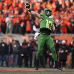 The Pacific Northwest rivals are both coming off great seasons after transferring into the Pac-12. Penix, who leads the nation in passing yards per game (363), already has announced he’ll be back, and Nix seems to be leaning in that direction. Nix threw 27 touchdown passes and ran for 14 scores.