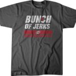 The team introduced new shirts with the “Bunch of jerks” phrase above the Hurricanes’ logo. The “C” in the jersey includes the team’s hurricane warning flags logo.