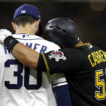 Kinsler’s three-run shot off Richard Rodriguez (0-3) with two outs in the sixth gave the Padres a 4-2 lead and got them off the hook for some shoddy play. It was Kinsler’s fifth.
