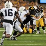 Iowa’s defense then stopped Penn State near midfield, blitzing Ethan Grunkemeyer on fourth down at the Penn State 49 and forcing an incomplete pass.