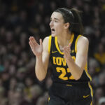 She has 3,650 career points. Woodard had 3,649 points for Kansas from 1977-81, before the NCAA sanctioned the sport. Earlier this month, Clark broke Kelsey Plum’s NCAA scoring record (3,527 points).