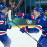 The goals by Tkachuk and Eichel — two-thirds of the top line along with Brady’s brother, Matthew — midway through the second period tied it and gave the U.S. the lead. Defenseman Noah Hanifin added another when his shot got through Mads Sogaard and trickled over the goal line a bit later, providing some breathing room that proved necessary.