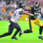That was in reference to the most infamous play of Washington’s rookie season. In a Week 11 game at Denver, the score was tied 17-17 late in the third quarter when Roethlisberger called Washington’s number. Washington got a clean break and cut up the right sideline, getting behind the Broncos defensive backs. The pass was beyond Washington’s reach, but instead of remaining in stride, the rookie leaped for the ball and lost control of the pass when his body hit the ground.