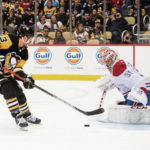 From the right point, Crosby snapped a pass to defenseman Marcus Pettersson in the left circle. Reaching around a poke check by Jeff Petry, Pettersson slid the puck to the front of the crease. Battling through a check from Canadiens defenseman Brett Kulak, Zucker chopped the puck over Price’s hand.