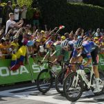 Faced with temperatures peaking at around 40 degrees Celsius (104 F), organizers deployed measures to deal with extreme heat. They relaxed the rules on riders’ refreshments and the maximum time to complete the stage, which at 202.5 kilometers (126 miles) was the joint second-longest of this year’s Tour. Environmental protesters blocked the road at one point and were quickly removed.