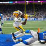Two plays after Jahmyr Gibbs was stopped for a loss just inside Green Bay territory on fourth down, Love threw a 51-yard touchdown pass to Christian Watson to give Green Bay a 24-14 lead early in the third.
