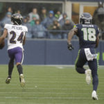 Wilson was nearly flawless for the first six games but struggled to find open receivers against Baltimore’s physical secondary. Seattle (5-2) was leading 10-6 and driving when Wilson made the mistake of double-clutching and trying to throw late into the flat. Peters, traded to Baltimore less than a week ago, made a quick break on the throw, stepped in front of Jaron Brown and outraced Wilson for his fifth career interception return touchdown, the most of any player since Peters entered the league in 2015.