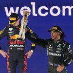 Hamilton’s nail-biting win Sunday at the Saudi Arabian Grand Prix was his third straight to pull him level with Verstappen on 369.5 points. The British veteran is within touching distance of title No. 8 to move one ahead of Michael Schumacher and stand alone among F1 greats.