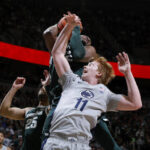 The Spartans (9-5, 1-2) led by 15 at the break and pushed it to a 27-point lead after Hall hit a jumper with 13:15 left to make it 69-42. The Nittany Lions rallied and cut their deficit to 19 after Qudus Wahab hit the first of two free throws to make it 71-52, but Sissoko and Tyson Walker each scored at the basket to spark a 9-0 run that pushed the lead to 28 points with five minutes left. Xavier Booker’s 3 with 2:16 left made it a 33-point advantage, 90-57.