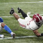 ATLANTA — Najee Harris scored five touchdowns and No. 1 Alabama advanced to the College Football Playoff with a perfect record, holding off No. 11 Florida in a 52-46 shootout for the Southeastern Conference championship Saturday night.