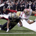 Brees had forecast that the Saints would have a plan to handle the Niners’ vaunted defensive line. They backed it up early with TD drives on New Orleans first four possessions. The first two ended with scoring passes of 38 and 26 yards to Cook. But on Cook’s second TD, he was knocked out of the game on a hard hit to the head from cornerback Ahkello Witherspoon.