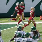 EAST RUTHERFORD, N.J. — Raheem Mostert ran for an 80-yard touchdown on San Francisco’s first play from scrimmage and Jimmy Garoppolo threw two TD passes — before both players sat out the second half with injuries — and the banged-up 49ers rolled past the inept New York Jets 31-13 on Sunday.