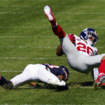 The Giants drove to the 10 before Golden Tate got flagged for pushing off against Eddie Jackson near the goal line on an incomplete pass as time expired.