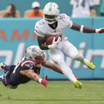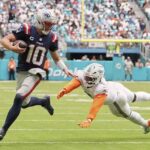 Maye completed 19 of 23 passes for 230 yards. He had an 8-yard TD pass to former Dolphin Mack Hollins and a 16-yard scoring toss to Kayshon Boutte.