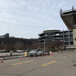 Construction is underway outside Acrisure Stadium as the NFL Draft stage begins to take shape, bringing the buzz of draft season to the North Shore.