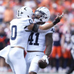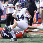 Penn State pulled away in the second half, scoring on a 11-yard halfback pass from Trey Potts to Tyler Warren and Nick Singleton’s 16-yard run that made it 30-7 early in the fourth quarter.