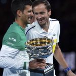 Medvedev’s flat, wrap-the-racket-around-his-neck forehand was iffy at first, missing wide, long and into the net in the initial 10 minutes. Djokovic grabbed 13 of the match’s initial 16 points and a quick 3-0 lead. Soon enough, though, it was 3-all, then 5-all.