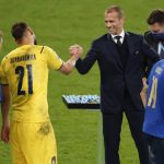 Ceferin also shook hands with Italy’s standout goalkeeper Gianluigi Donnarumma at the Euro 2020 medal and trophy presentation in London on Sunday. Donnarumma’s save in a penalty shootout clinched the title for Italy against England.