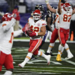 The Chiefs scored touchdowns on their first two possessions — one on a run by Mahomes, the other on a pass — for a 13-3 lead. Following that second score, Ravens rookie Devin Duvernay fielded the kickoff and sprinted down the right sideline for a 93-yard touchdown.
