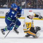 Penguins forward Egor Chinakhov appeared to open the scoring 7:47 into regulation, but the Canucks issued a coach’s challenge, alleging the sequence to be offside. Officials reviewed the video and euthanized the score.