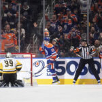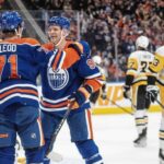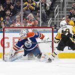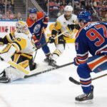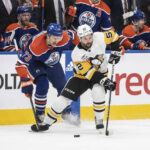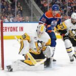 After Penguins defenseman Erik Karlsson was unable to keep a puck in the offensive zone at the right point, Oilers forward Connor McDavid took possession and initiated a two-on-one rush with Hyman against defenseman Marcus Pettersson. Gaining the offensive zone on the left wing, McDavid released a wrister from the left circle to the far side as Pettersson slid down to take away a pass. Goaltender Alex Nedeljkovic made the initial save with his left leg but couldn’t smother the rebound. Hyman crashed in from the right of the crease and backhanded the puck through Nedeljkovic’s five hole. McDavid, a former Erie Otters star, and forward Leon Draisaitl had assists.