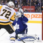 Later in the second period, Crosby lost a defensive-zone draw to John Tavares. Seconds later, a Morgan Rielly shot from the left wing skidded to the front of the net, where Hyman outmaneuvered Kris Letang and scored as he was falling to his backside.