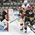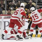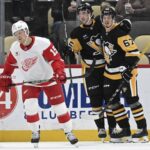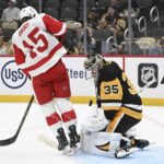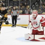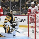 The Penguins’ lead was short-lived, as Detroit’s Amadeus Lombardi evened things up 74 seconds later, beating Jarry with a wrister.