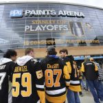 Despite the cloudy, chilly weather, hundreds of Pittsburgh Penguins fans flocked to perch on a chair and cheer on their team outside of PPG Paints Arena as the “big screen” made its return Saturday.