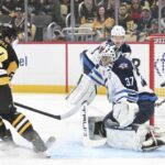 After Chinakhov was denied on the opening attempt, Crosby and Rakell beat goalie Connor Hellebuyck. For the Jets, forward Jonathan Toews hit a post, and Gustav Nyquist was rejected by Silovs.