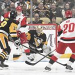 After the Hurricanes firmly established possession in the offensive zone, Aho accepted a pass above the left circle, surveyed for a shooting lane and zipped a wrister. Penguins forward Connor Dewar deflected the puck slightly with his stick, causing it to carom off the ice, then hop past Skinner’s blocker. Former Penguins forward Jordan Staal offered a stout screen on the sequence. Forward Seth Jarvis had the only assist.