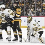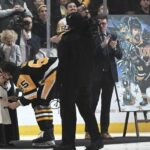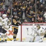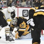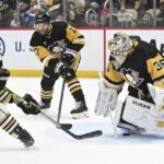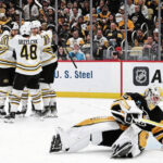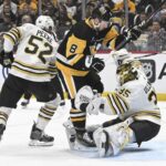 After Coyle beat Crosby on a draw in the Bruins’ left circle to open a power-play sequence for the hosts, Bruins defenseman Hampus Lindholm skated the puck to his own blue line and dumped it down ice. Jarry corralled the puck and attempted to sweep it behind the cage to the left corner for a teammate, only to have Coyle hustle past Karlsson to claim possession. Curling over the left circle, Coyle slid a pass low in the right circle for Bruins forward Brad Marchand, who attacked the cage and slid a wrister through Jarry’s five hole for his 29th goal. The only assist was claimed by Coyle.