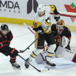 Letang appeared to score at 11:21 of the second frame, but officials immediately waved it off after determining Penguins forward Rickard Rakell interfered with goaltender Linus Ullmark. The Penguins issued a coach’s challenge that was unsuccessful, leading to a delay-of-game penalty.