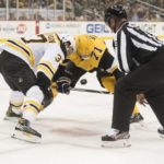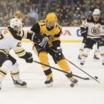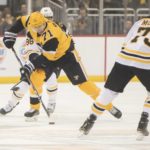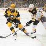 Forward Evgeni Malkin forechecked on Bruins defenseman Charlie McAvoy along the end boards, forcing a turnover. He then slipped a forehand pass low to the left circle, where forward Bryan Rust fired a wrister past Halak’s blocker with his team-leading 21st goal.
