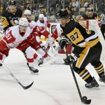Detroit tied the score 1-1 at 15:42 with a power-play goal. Off a feed from defenseman Filip Hronek, forward Dominik Kubalik boomed a one-timer from above the Penguins’ right circle past goaltender Tristan Jarry’s glove hand on the near side for his first goal. Hronek and forward Michael Rasmussen registered assists.