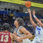 Corhen scored Pitt’s first six points before the Panthers went on a 12-2 run. All scoring plays occurred in three-point increments with Leggett (two) and Cummings hitting from long range and Cummings adding three foul shots.