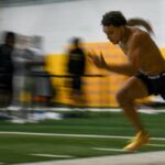 • Offensive tackle Branson Taylor, who had season-ending knee surgery 4 1/2 months ago, did 25 bench press reps and jumped 28 1/2 inches at 6-foot-6, 315 pounds.