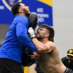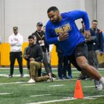 “Everybody here, I feel like, has a chip on their shoulder and something to prove,” said linebacker Brandon George, who wasn’t invited to the NFL Combine but had Wednesday’s best efforts in the bench press (28 reps) and vertical jump (42 1/2 inches). Those numbers would have led all linebackers at the Combine — two more lifting reps and 2 inches higher in the vertical than California’s Teddye Buchanan, who was No. 1 at that position in Indianapolis.