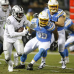 OAKLAND, Calif. — Josh Jacobs scored on an 18-yard run with 1 minute, 2 seconds remaining, and the Oakland Raiders had a late winning touchdown drive for the second time in five weeks, beating the Los Angeles Chargers, 26-24, on Thursday night.