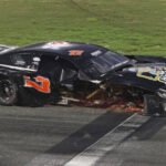 Robbie Brewer’s car struck head-on a wall on the quarter-mile track at Bowman Gray Stadium in Winston-Salem and came to a stop near the start-finish line.