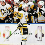 Accepting a pass on the Penguins’ left half-wall, Sabres forward Jack Quinn dished the puck low to the left of the cage for Thompson. With Silovs hugging the post, Thompson lasered a bad-angle shot through a keyhole-narrow opening between the right side of Silovs’ mask and the iron. Quinn and defenseman Rasmus Dahlin had assists.