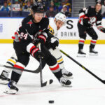 Sabres defenseman Bowen Byram forced Penguins forward Egor Chinakhov into a turnover near the center red line, allowing Sabres forward Ryan McLeod to claim possession and offload a pass to Zucker. Gaining the offensive zone on the left wing, Zucker went a bit wide on Penguins defenseman Ryan Shea and released a wrister from the near circle. The puck beat Silovs’ glove on the far side, clunked off the post and entered the cage. McLeod and Byram had assists.
