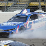 Chase Elliott was third. Christopher Bell, who had to start from the back of the field in a backup car after crashing during practice Friday, was fourth. Ricky Stenhouse Jr., who like Blaney took two tires on the final pit stop, finished fifth.