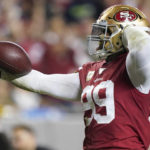 On San Francisco’s next drive, Jadeveon Clowney beat Mike McGlinchey and knocked the ball out of Garoppolo’s hands for a fumble that was recovered by Poona Ford at the 24. Carson ran it in four plays later to make it an 11-point game.