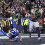 SEATTLE — Sam Darnold connected with Jaxon Smith-Njigba for a touchdown in overtime, then hit a wide-open Eric Saubert for the winning 2-point conversion, and the Seattle Seahawks rallied from a 16-point fourth-quarter deficit to stun the Los Angeles Rams 38-37 on Thursday night and take a one-game lead in the NFC West.