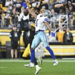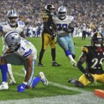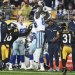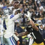 Prescott’s second interception and his third turnover of the game opened the door for another comeback. The Steelers went 63 yards in 12 plays and took a 17-13 lead on Fields’ 6-yard touchdown pass to Freiermuth with 4:56 left.