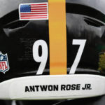 The decals applied to the bottom of the back of the helmets of dozens of other Steelers players on Monday featured “Antown Rose Jr.” in all-capital, black letteringon a white background.